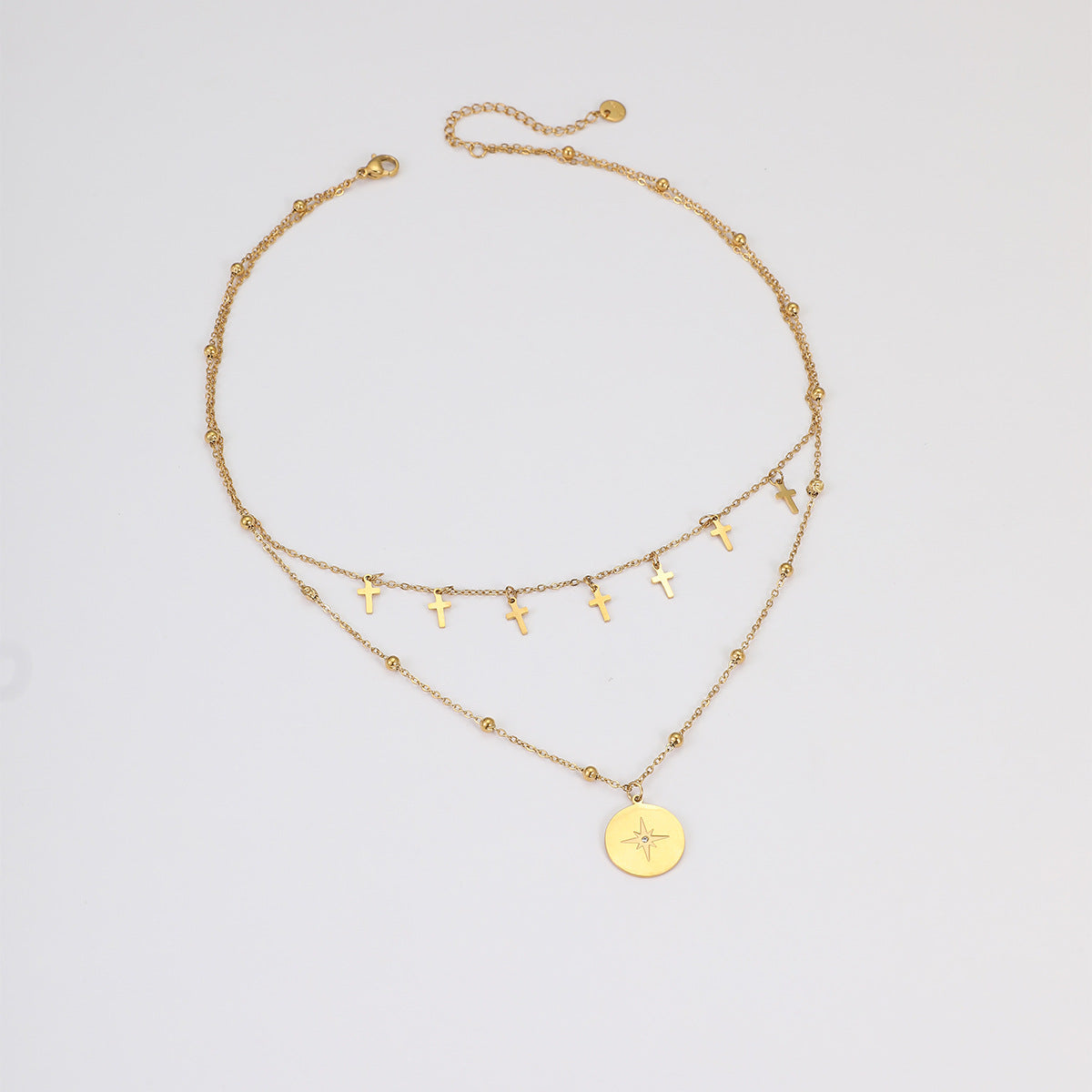 Rock a retro vibe with this Retro Twin Layer Titanium Necklace! Featuring a double layer design with a cross and awn star pendant in stainless steel, it brings playful edge and timeless charm to your look. Perfect for stacking style with a fun twist!
