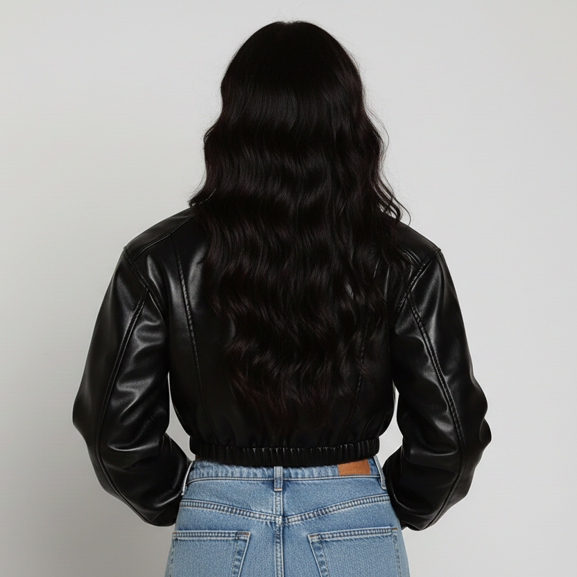 Crafted from faux leather, this timeless black cropped bomber jacket exudes classic charm. Boasting ribbed cuffs and hem, it offers a flattering fit that accentuates your silhouette. Whether you're shopping with the girls or exploring the city streets, this jacket keeps you dry and effortlessly stylish.